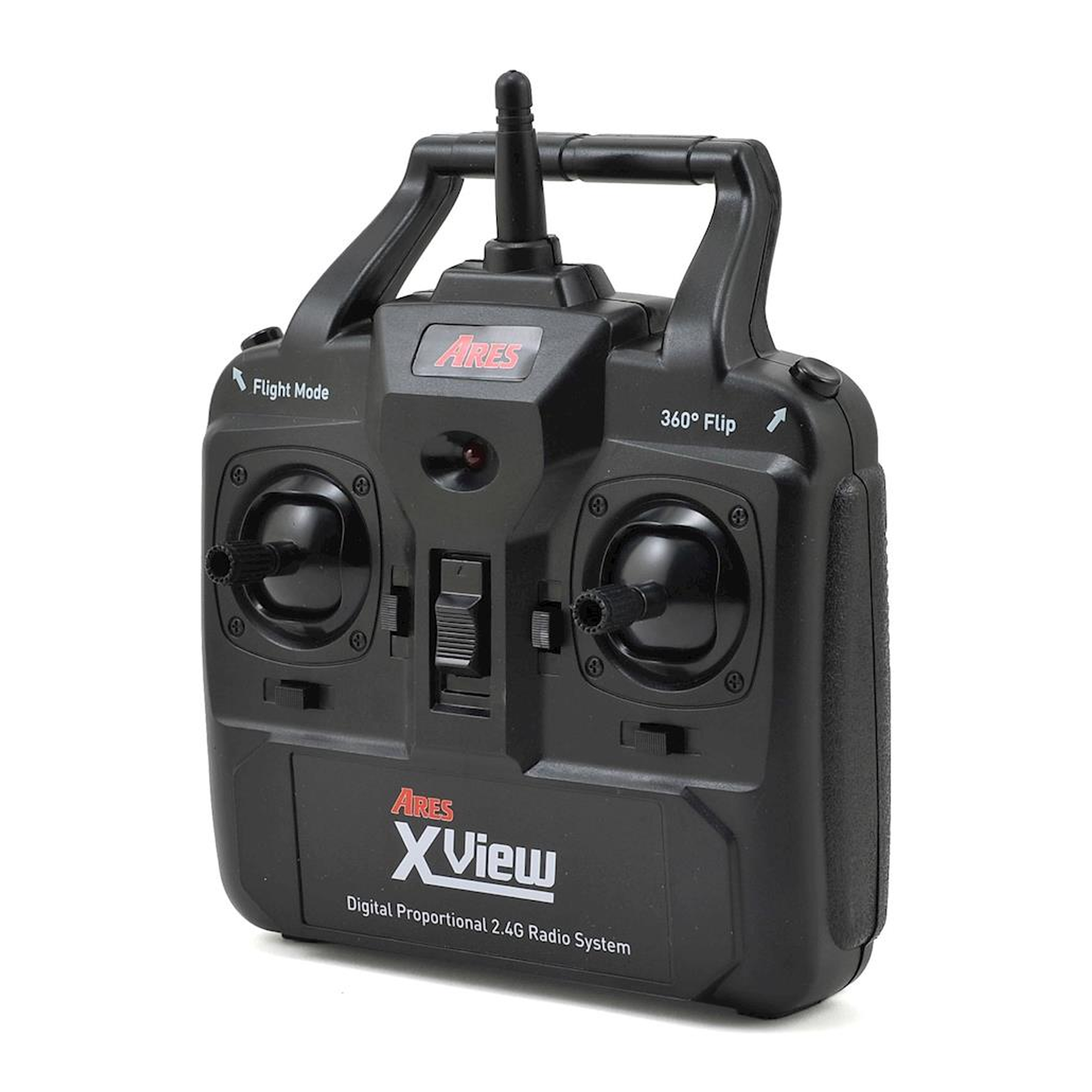 • XView Package: The Ares XView comes 100% factory assembled and includes a 2.4GHz transmitter, a 1S 3.7V 300mAh LiPo, a USB charger, spare propeller set and a smartphone mount for the transmitter. Just add 4 ‘AA’ batteries for the transmitter.