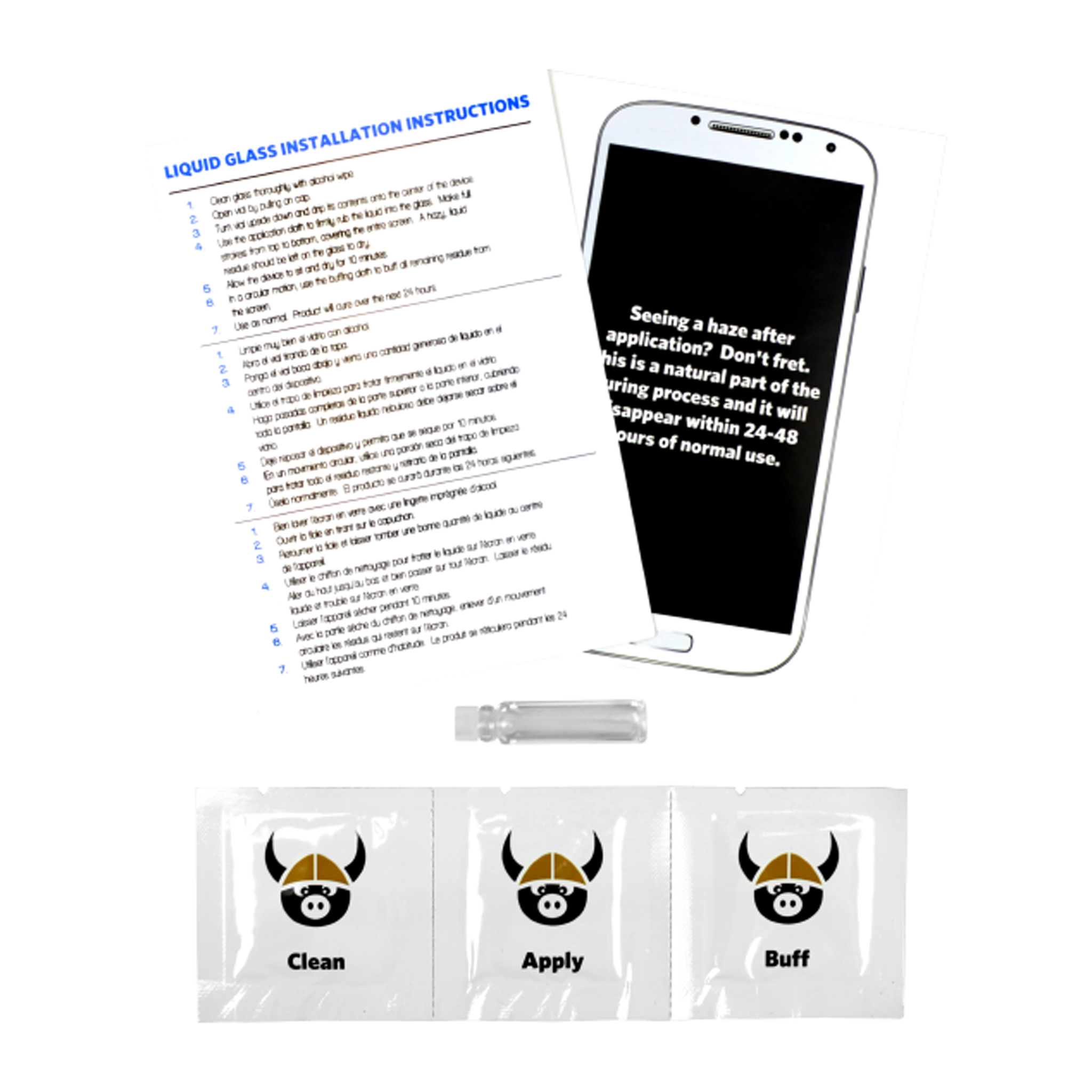 Simply drip the contents of the vial onto your screen, wipe it on and buff it off. The device can be used immediately after application, while the product will completely cure over the next 24 hours.