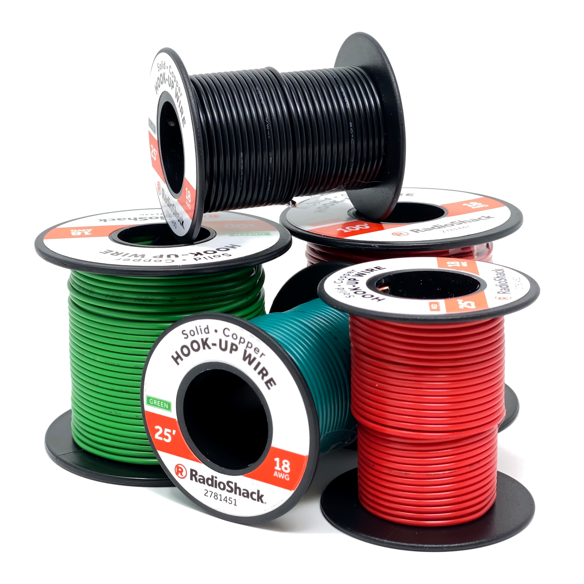 RadioShack hook-up wire is available in multiple colors, gauges, core types, and lengths.
