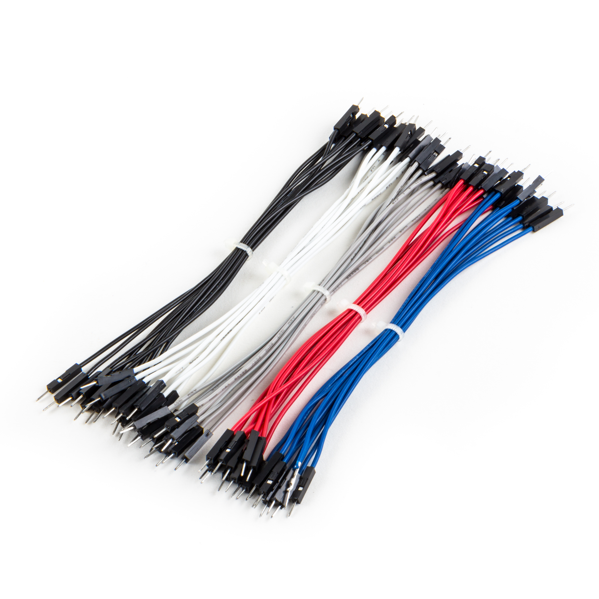 These 6" long 22 AWG jumpers have DuPont-style male connectors on both ends. The 0.025″ square pin size fits nice and snug to the sockets on your Arduino and Arduino-compatible board as well as any standard breadboards. The five different colors help you organize your circuit wiring and minimize connection error. Multiple jumpers can be installed next to one another on a 0.1″ socket.
