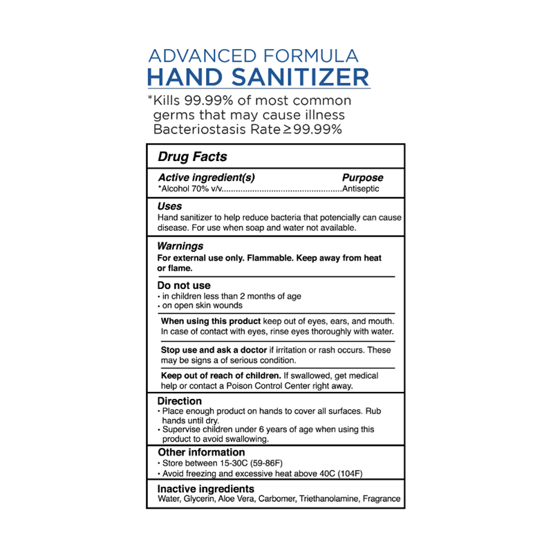 Keep your hands sanitized with this advanced formula hand sanitizer gel by PQS. Formulated to kill 99.9% of germs and bacteria that may cause illness. Plus, it contains aloe vera and a slight lemon scent to keep your hands moisturized and refreshed.