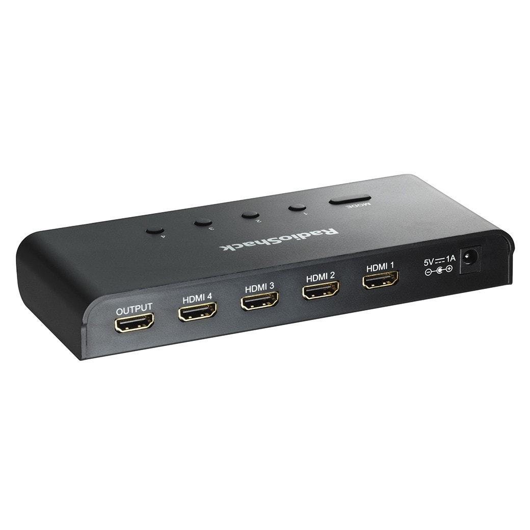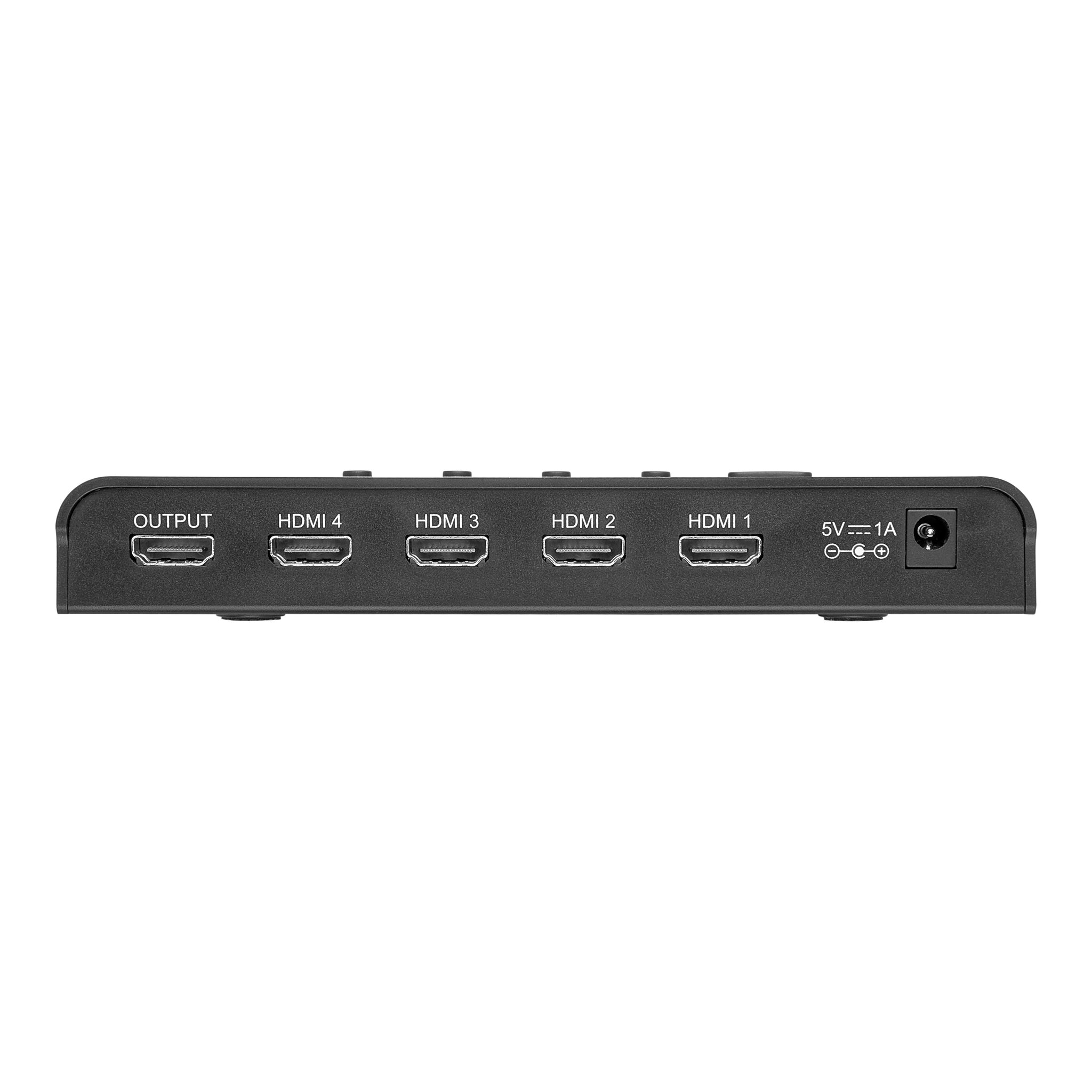 • Featuring four HDMI inputs and one HDMI output, this versatile device enables simple switching between sources with just the touch of a button