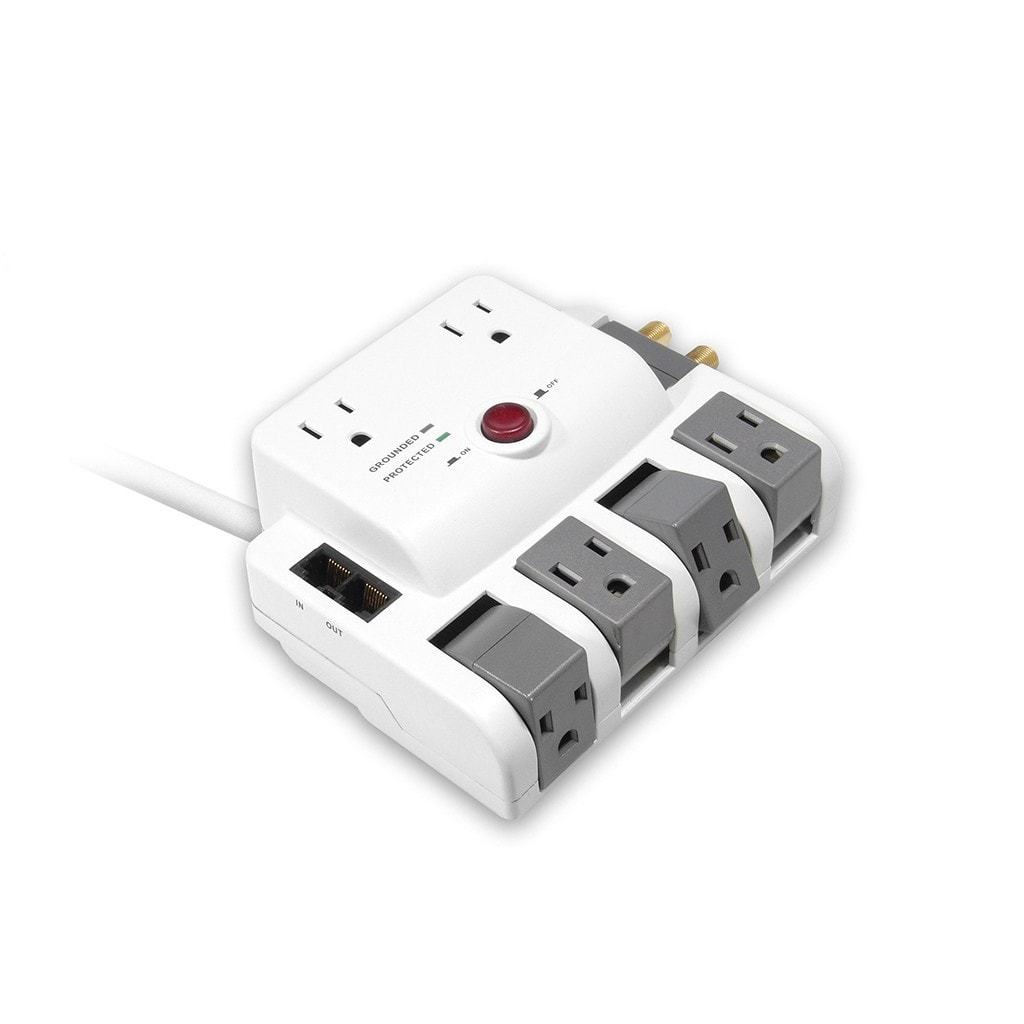 Rotating Power surge protector organized your plugs and protects your equipment from unexpected surges in electricity.