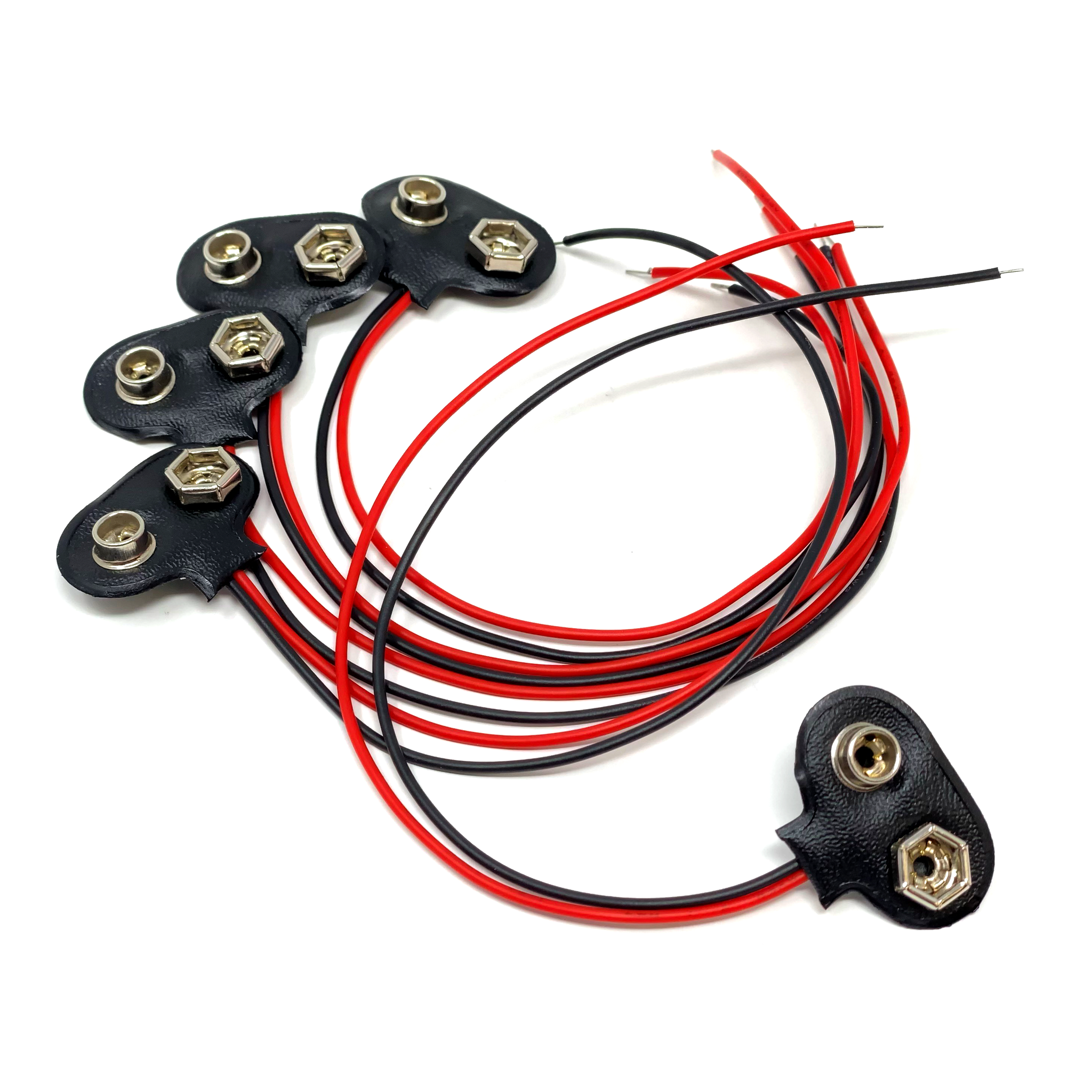 - Has color-coded wire leads and also attaches to our battery holders that have snap connectors.